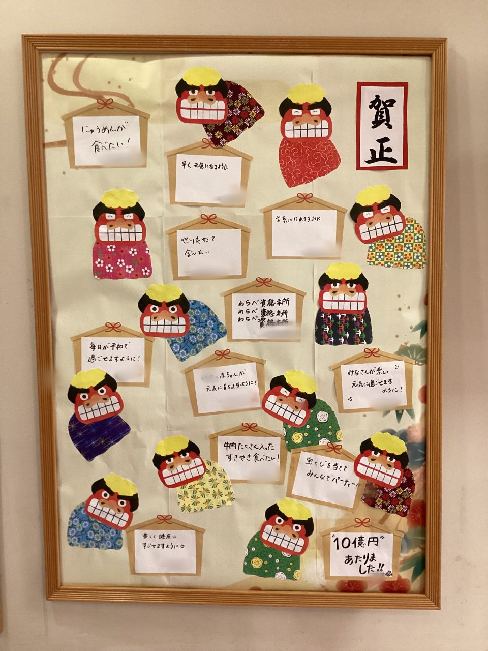 絵馬を掲示しました 2025.12.31│トピックス 創作で絵馬と獅子舞を作成しました。 個性豊かな願い事が集まりました♪ 完成後は「きれいねー」「華やかねー」と言って下さる患者さんもいらっしゃいました。 1月キッチンカースケジュール クリスマスレクリエーションを行いました♪ ARCHIVES 2026.2 2026.1 2025.12 2025.11 2025.10 2025.9 2025.8 2025.7 2025.6 2025.5 2025.4 2025.3 2025.2 2025.1