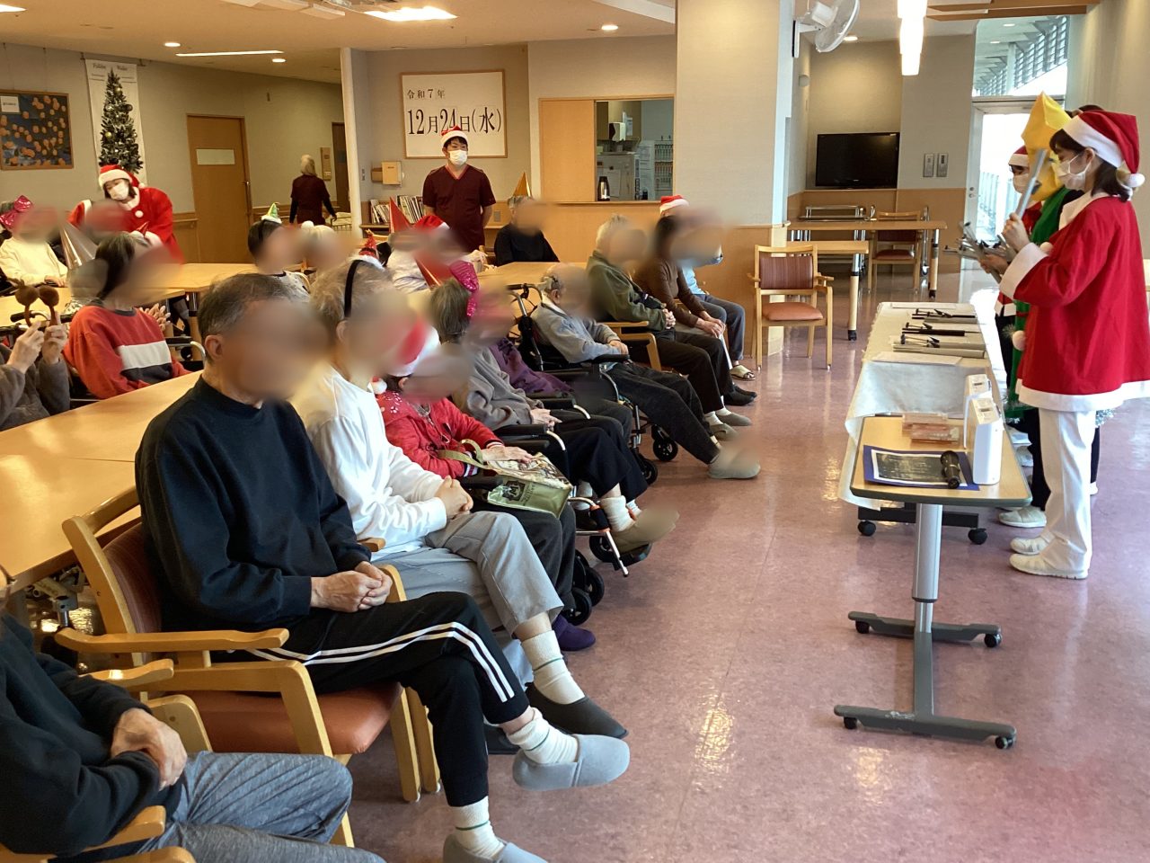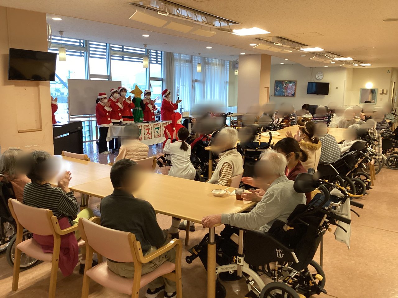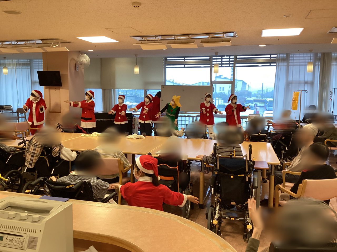 最後に“サンタが街にやってくる”に合わせて職員によるダンスも行ったのですが、ある病棟では患者さんから「アンコール!」とリクエストをいただき、皆様も一緒にダンスに参加してくださいました。