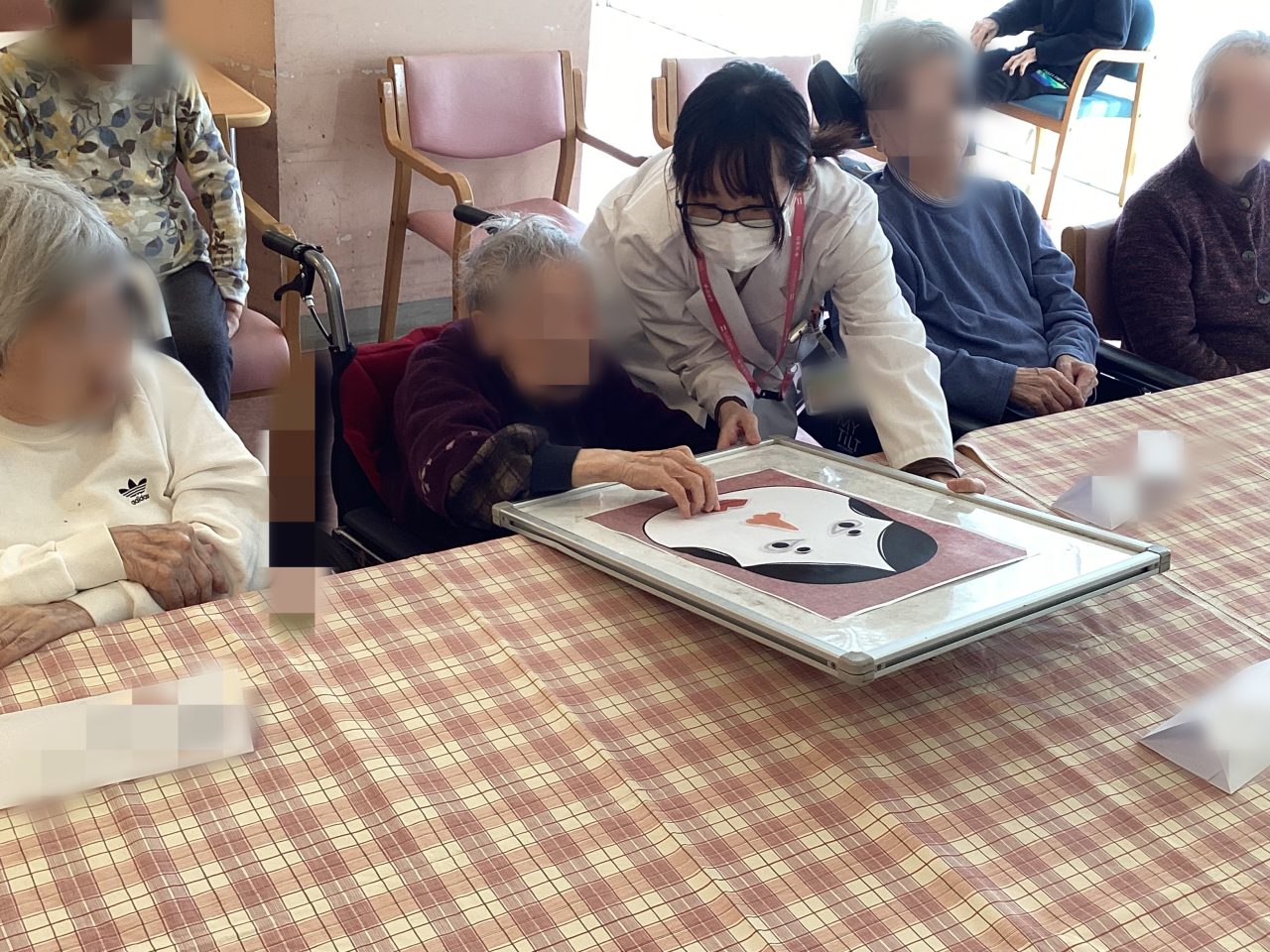 みなさんで仕上げる福笑いも盛り上がりました。