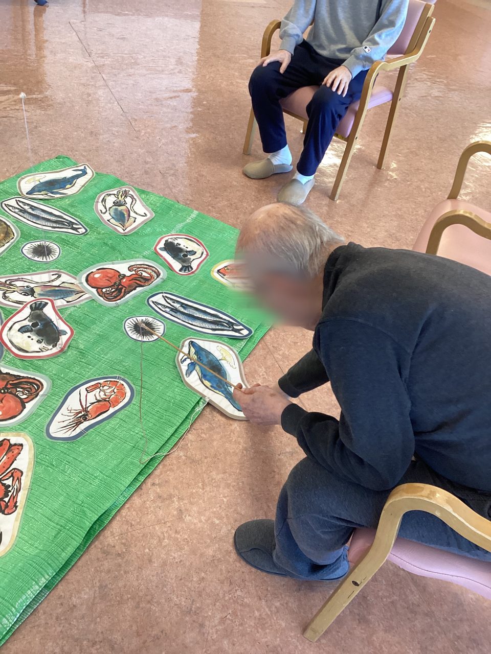 今回は釣り堀をイメージした魚釣りレクリエーションを行いました。